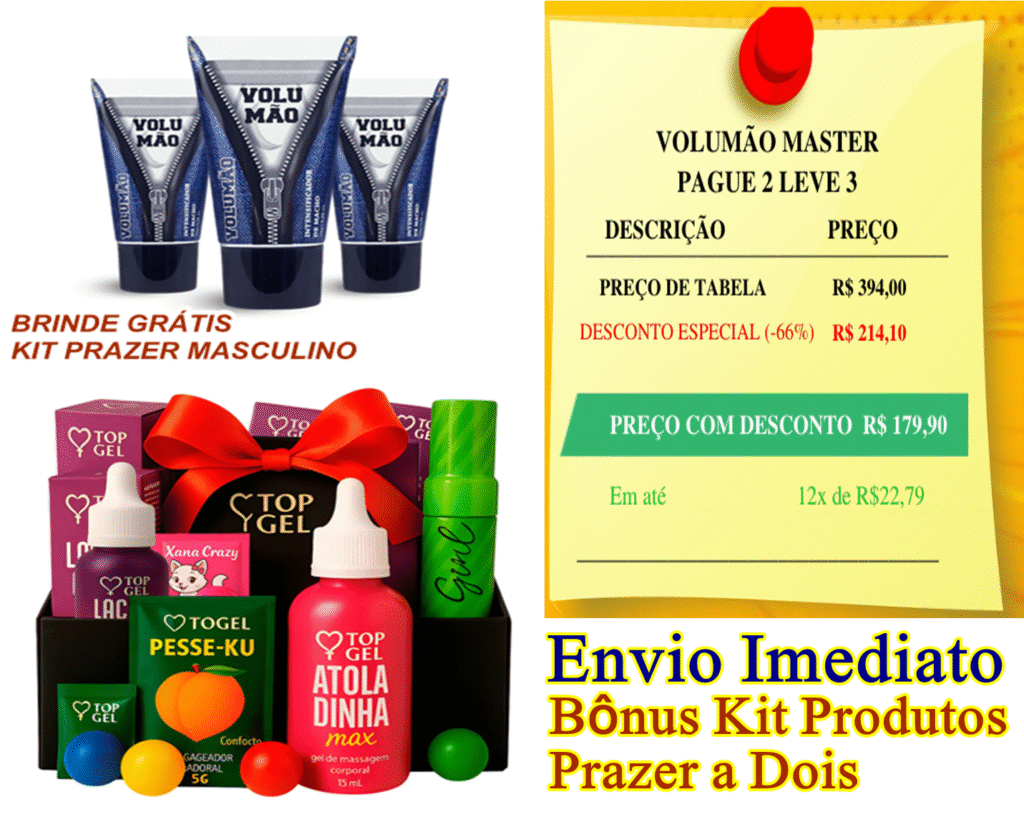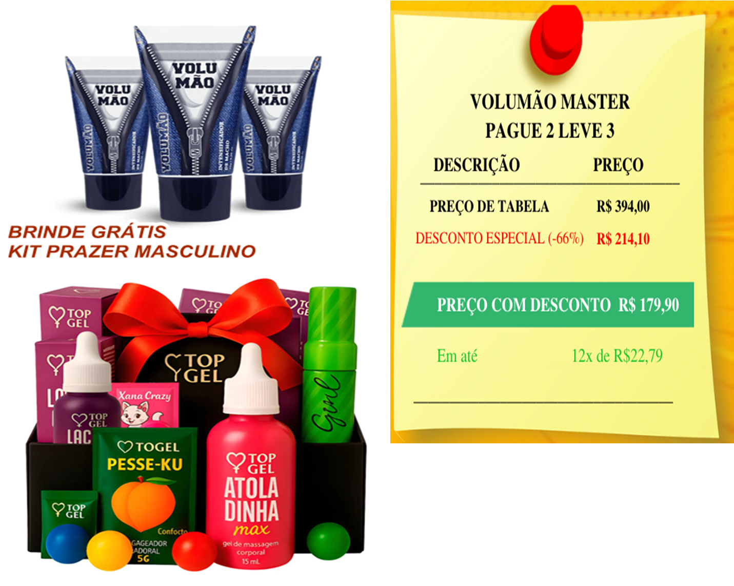 Volumão Leve 3 Pague 2 + Kit de Gel Prazer Masculino